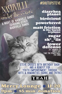 Before we get to the show listings, I have a show of my own to plug: I’m turning 30 this Sunday the 20th, and to celebrate I put together the 3rd-ever “Nashville Under the Covers” show at Mercy Lounge. That is, Nashville bands covering other Nashville bands. AND, it’s all to benefit YEAH‘s TN summer youth music camps- SGRRC and TNTRC. It’s gonna be a blast, and the lineup is fun (though Matt Friction did have to drop off the bill at the last minute), and the minimum donation is only $5! For more, read the generous blog post the Nashville Cream gave me yesterday. That’s this Sunday Nov. 20th, 9pm at Mercy Lounge, 18+, $5 minimum donation. (Hot tip: past YEAH volunteers will get in FREE with their volunteer tshirts!)