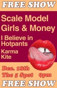 Scale Model, I Believe in Hotpants, Girls & Money, Karma Kite @ the 5 Spot. 9pm FREE 21+ (See above!)