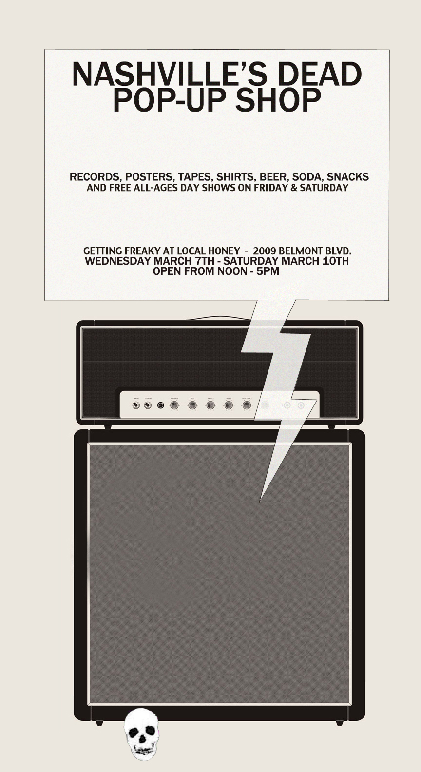 Also, returning from last year’s Freakin’ Weekend is the pop-up shop at Local Honey! Not only can you grab limited releases, vinyl, tapes, etc… from labels like Infinity Cat, Nashville’s Dead, Turbo Time, Third Man, Cass, Sebastian Speaks and many more, but on Friday & Saturday you can also catch great free day shows in the back lot as well! Head over to Nashville’s Dead for the full lineup+details. Major props to Ben Todd & his crew for making such a cool string of shows happen. They’ve really upped the ante this year by nailing a few bigger-name headliners, most notably The Greenhornes, whose rhythm section shares duties with The Raconteurs.